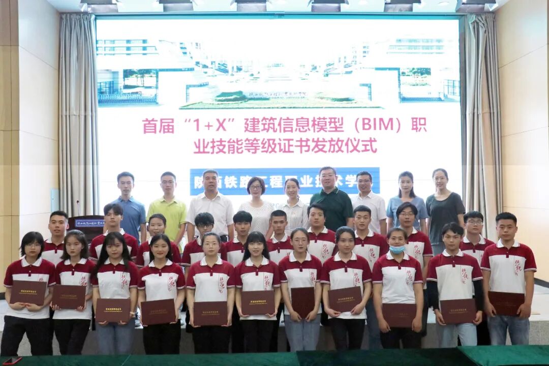 陕西铁路工程职业技术学院首届“1+X”BIM证书发放仪式合影照片